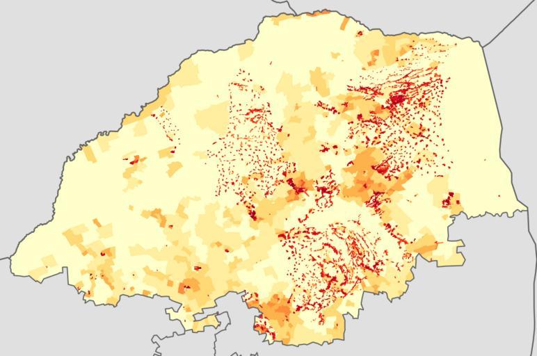 | Keywords: Limpopo 2011 population density map.svg ffffcc <1 inhabitant/km² ffeda0 1 “3 inhabitants/km² fed976 3 “10 inhabitants/km² feb24c 10 “30 inhabitants/km² fd8d3c 30 “100 inhabitants/km² fc4e2a 100 “300 inhabitants/km² e31a1c 300 “1000 inhabitants/km² bc0026 1000 “3000 inhabitants/km² 800026 >3000 inhabitants/km² Projection is Albers Equal-Area Conic with standard parallels at 25 5° S and 31 5° S and origin at 28 5° S 25 5° E Statistics South Africa's Census 2011 is the source of the basic population data The map results from my own processing of the data Htonl 2013-10-22 http //beta2 statssa gov za/ page_id 425 The following license applies to the population data on which the map is based the user acknowledges Stats SA as the source of the basic data wherever they process apply utilise publish or distribute the data and also that they specify that the relevant application and analysis where applicable result from their own processing of the data The following tag applies to the map itself Demographic maps of South Africa Maps of Limpopo |
