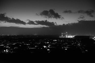 Keywords: lindø yard shipyard industrial city night landscape view denmark munkebo sky urban society populated