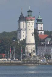 Keywords: lindau port harbour entrance water city quay wall germany lake constance lighthouse church bank