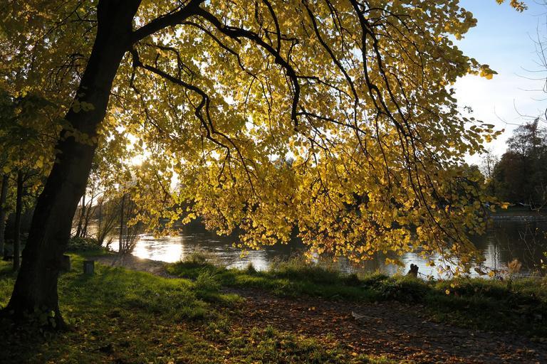 Keywords: linde tree autumn idyll danube river water promenade bank autumn mood autumn light riverside river floodplain aue fall color leaves yellow fall foliage lime tilia platyphyllos summer linde eurybia linde deciduous tree tilia mallow malvaceae