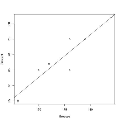 | Keywords: Linear regression plot with R.svg R-Code erzeugt <source lang rsplus > Groesse <- c 176 166 172 184 179 170 176 Gewicht <- c 65 55 67 82 75 65 75 fit<-lm Gewicht~Groesse svg linear_regression_plot svg plot Gewicht~Groesse abline fit dev off </source> Created with R 2012-02-18 own Rosentod cc-zero Uploaded with UploadWizard Check categories 2015 July 5 GNU R |
