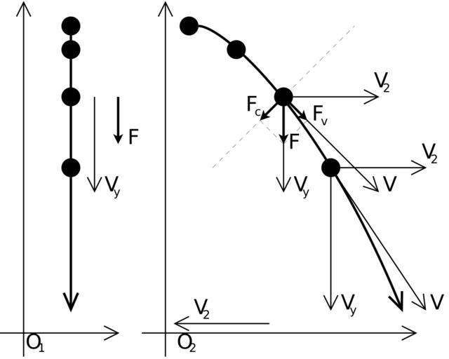 | Keywords: LinearToParabolicMoving.svg en Transform from static system to linear moving system change linear trajectory of dropped thing to paraboloid ru Пе еход из неподвижной ине циальной системы в авноме но двигающуюся п иводит к п еоб ажению линейной т аекто ии уско яющегося тела в па аболическую что позволяет начинать гово ить о цент ост емительной силе own original text selfmade 1 Nashev 2012-06-21 Vector force diagrams Cc-zero | ||||