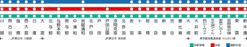 | Keywords: Linemap of East Japan Railway Company Saikyo Line.PNG ja 日 旅客鉄道 越線・埼京線・ 京臨海高 鉄道 りんかい線の路線図 投稿 が制 Chihayasassas 2009-11-13 <gallery> Image Linemap of East Japan Railway Company Tōkaidō Line PNG Image Linemap of East Japan Railway Company Yamanote Line PNG Image Linemap of East Japan Railway Company Keihintōhoku and Negishi Line PNG Image Linemap of East Japan Railway Company Keiyo Line PNG Image Linemap of East Japan Railway Company Yokohama Line PNG Image Linemap of East Japan Railway Company Kawagoe Line PNG Image Linemap of East Japan Railway Company Hachikō Line PNG Image Linemap of West Japan Railway Company Osaka loop Line PNG Image Linemap of West Japan Railway Company Osakahigashi Line PNG Image Linemap of TokyoMetro Ginza Line png Image Linemap of TokyoMetro Marunouchi Line png Image Linemap of TokyoMetro Namboku Line PNG Image Linemap of Tokyo Metropolitan Government Bureau of Transportation Asakusa Line PNG Image Linemap of Tokyo Metropolitan Government Bureau of Transportation Mita Line PNG Image Linemap of Tokyo Metropolitan Government Bureau of Transportation Oedo Line PNG Image Linemap of Osaka Municipal Transportation Bureau Midosuji Line PNG Image Linemap of Osaka Municipal Transportation Bureau Tanimachi Line PNG Image Linemap of Osaka Municipal Transportation Bureau Yotsubashi Line PNG Image Linemap of Osaka Municipal Transportation Bureau Chuo Line PNG Image Linemap of Osaka Municipal Transportation Bureau Sennichimae Line PNG Image Linemap of Osaka Municipal Transportation Bureau Sakaisuji Line PNG Image Linemap of Osaka Municipal Transportation Bureau Nagahori Tsurumi-ryokuchi Line PNG Image Linemap of Osaka Municipal Transportation Bureau Imazatosuji Line PNG Image Linemap of Osaka Municipal Transportation Bureau Nanko Port Town Line PNG </gallery> Railway maps of JR East |