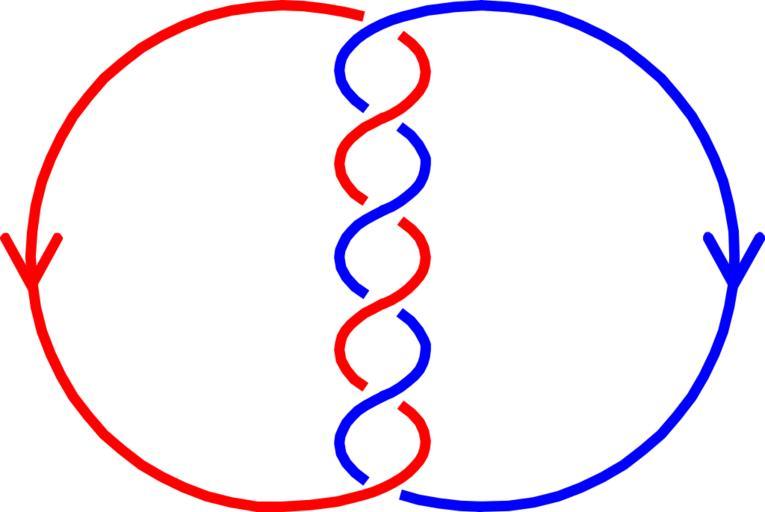 Keywords: Linking Number 3.svg Two curves with linking number 3 Topologically equivalent to star of David as two symmetrically interlaced triangles Own Jim belk 2 component links Topology diagrams Knots and links on transparent background
