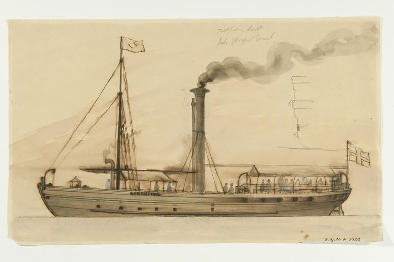 | Keywords: LINKÖPING Ångfartyg, SB 511.tiff Artwork Creator Per Wilhelm Cedergren sv Linköping var Sveriges första propellerdrivna ångfartyg Det byggdes vid Motala Varf i Norrköping och sjösattes 1846 Ångarens konstruktör O E Carlsund fick många lovord Linköping gjorde framför allt resor mellan Stockholm och Linköping Hon bytte senare namn till Runeberg Efter en kort tid som bogserbåt i Örnsköldsvik totalförstördes fartyget som då hette Delphin vid en brand 1874 Akvarellen är utförd av konstnären Pehr Wilhelm Cedergren 1823-1896 En samling av hans akvareller med ångfartyg har kommit i Sjöhistoriska museets ägo genom gåva på 1930-talet pencil Watercolor paper Institution Sjöhistoriska museet LINKÖPING Tältställning hvit Skrofvet svart PD-old-auto 1896 Sjöhistoriska museet Anneli Karlsson accession number SB 511 Steamships of Sweden Sjöhistoriska museet 19th-century paintings of ships Linköping Ship 1846 Watercolor paintings 19th-century paintings from Sweden Per Wilhelm Cedergren |