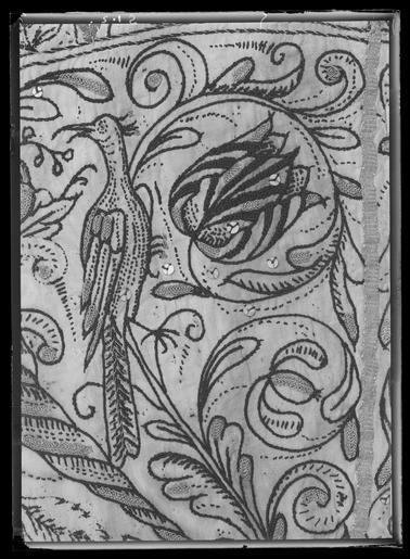 Keywords: Linnestrumpa buren av Gustav II Adolf i slaget vid Lützen - Livrustkammaren - 35185.tif Strumpa av tuskaftat linne trÃ¥dtäthet 37x37 per cm2 Tillskuren i fyra delar tvÃ¥ kragstycken ben och fot som är hopsydda med efterstygn Kragens övre kant avslutas med 14 flikar formade som bÃ¥gar Formen pÃ¥minner om reticella-spetsens bÃ¥gformade kanter Den är fodrad med ett grövre linne som skyddar broderiets baksida Kragens höjd är 28 cm och dess övre omkrets 68 cm Broderade i svart silke och guldtrÃ¥d huvudsakligen i stjälkstygn Motivet är lika pÃ¥ kragens bÃ¥da sidor Huvudmotivet är ett ymnighetshorn med frukter som äpple päron och druvor Vid sidan av hornet en fÃ¥gel Den Ã¥terstÃ¥ende ytan täcks av slingrande blad och stjälkar samt blommor som tulpan ros och liljekonvalj PÃ¥ varje flik pÃ¥ kragen är en liten blomma broderad Motiven är dekorerade med guldtrÃ¥dar lan pÃ¥ silkekärna som sytts i flätmönster Över sömmarna och kring den övre kanten ligger ett slätt guldband Broderiet överensstämmer med den engelska typen av broderi med svart trÃ¥d som man kan se pÃ¥ linneplagg frÃ¥n sent 1500-tal och tidigt 1600-tal Strumpans ben respektive fot är skurna pÃ¥ snedden för att ge bättre elasticitet och passform Benstycket har en liten triangulär skarvbit placerad vid mittbaksömmen uppe vid kragen Foten är skarvad framme vid tÃ¥n Stockings or w Boothose en of linen 37x37 thread count per square cm Cut into four parts two cuffs legs and feet which are sewn with backstitch The upper edge of the cuff ends with 14 arch-shaped tabs The shape of the tabs is reminiscent of reticella needlelace -edgings The cuff is lined with a coarse linen that protects the back of the embroidery The cuff height is 28 cm and its upper circumference is 68 cm The cuffs are embroidered in black silk and gold wire primarily in stem stitch The motif is the same on both sides of the collar The main subject is a cornucopia with fruits incluidng apples pears and grapes At the side of the horn is a bird The remaining area is covered by meandering leaves and stems and flowers such as tulips roses and lily of the valley Each tab on the collar has a small embroidered flower The motifs are decorated with gold threads gold-wrapped silk core sewn in a cable pattern Over the seams and around the top edge is a plain gold band The embroidery is consistent with the English type of embroidery with black thread blackwork that can be seen on the linen garments from the late 1500s and early 1600s The sock and foot pieces are cut on the bias to provide better elasticity and fit The leg pice has a small triangular gusset from the middle of the back seam up to the cuff The foot is seamed ‹ ‹in front of the toe Detail of embroidered bird and tulip original caption Slaget vid Lützen 1632 size mm 630 häl-krage size mm 280 krage size mm 320 fot g 116 LRK Gustav II Adolf av Sverige Modelejon 2002 Jubileumsutst Lützen-Kapelle 2007 2007 place of origin original filename LN_B06534_009414 67690 inventory number LRK 31124 35185 CC0 Linnestrumpa buren av Gustav II Adolf i slaget vid Lützen - Livrustkammaren - 35185-negative tif <gallery caption Different images of same object > File Linnestrumpa strövling - Livrustkammaren - 68631 tif File Linnestrumpa - Livrustkammaren - 25703 tif File Linnestrumpa strövling - Livrustkammaren - 77191 tif File Linnestrumpa strövling - Livrustkammaren - 8705 tif File Linnestrumpa buren av Gustav II Adolf i slaget vid Lützen - Livrustkammaren - 43744 tif File Linnestrumpa strövling - Livrustkammaren - 146 tif File Linnestrumpa strövling - Livrustkammaren - 60069 tif File Linnestrumpa strövling - Livrustkammaren - 147 tif File Linnestrumpa buren av Gustav II Adolf i slaget vid Lützen - Livrustkammaren - 52304 tif File Linnestrumpa strövling - Livrustkammaren - 77190 tif File Linnestrumpa buren av Gustav II Adolf i slaget vid Lützen - Livrustkammaren - 26624 tif File Linnestrumpa strövling - Livrustkammaren - 17267 tif </gallery> Clothes of Gustav II Adolf Stockings Linen clothing Blackwork embroidery 1630s fashion Embroidered clothing Media contributed by LSH dim-with multiple size templates Media contributed by LSH unmatched objKeyword Media contributed by LSH 2013-10 |