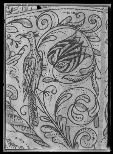 Keywords: Linnestrumpa buren av Gustav II Adolf i slaget vid Lützen - Livrustkammaren - 26624.tif Strumpa av tuskaftat linne trådtäthet 37x37 per cm2 Tillskuren i fyra delar två kragstycken ben och fot som är hopsydda med efterstygn Kragens övre kant avslutas med 14 flikar formade som bågar Formen påminner om reticella-spetsens bågformade kanter Den är fodrad med ett grövre linne som skyddar broderiets baksida Kragens höjd är 28 cm och dess övre omkrets 68 cm Broderade i svart silke och guldtråd huvudsakligen i stjälkstygn Motivet är lika på kragens båda sidor Huvudmotivet är ett ymnighetshorn med frukter som äpple päron och druvor Vid sidan av hornet en fågel Den återstående ytan täcks av slingrande blad och stjälkar samt blommor som tulpan ros och liljekonvalj På varje flik på kragen är en liten blomma broderad Motiven är dekorerade med guldtrådar lan på silkekärna som sytts i flätmönster Över sömmarna och kring den övre kanten ligger ett slätt guldband Broderiet överensstämmer med den engelska typen av broderi med svart tråd som man kan se på linneplagg från sent 1500-tal och tidigt 1600-tal Strumpans ben respektive fot är skurna på snedden för att ge bättre elasticitet och passform Benstycket har en liten triangulär skarvbit placerad vid mittbaksömmen uppe vid kragen Foten är skarvad framme vid tån Stockings or w Boothose en of linen 37x37 thread count per square cm Cut into four parts two cuffs legs and feet which are sewn with backstitch The upper edge of the cuff ends with 14 arch-shaped tabs The shape of the tabs is reminiscent of reticella needlelace -edgings The cuff is lined with a coarse linen that protects the back of the embroidery The cuff height is 28 cm and its upper circumference is 68 cm The cuffs are embroidered in black silk and gold wire primarily in stem stitch The motif is the same on both sides of the collar The main subject is a cornucopia with fruits incluidng apples pears and grapes At the side of the horn is a bird The remaining area is covered by meandering leaves and stems and flowers such as tulips roses and lily of the valley Each tab on the collar has a small embroidered flower The motifs are decorated with gold threads gold-wrapped silk core sewn in a cable pattern Over the seams and around the top edge is a plain gold band The embroidery is consistent with the English type of embroidery with black thread blackwork that can be seen on the linen garments from the late 1500s and early 1600s The sock and foot pieces are cut on the bias to provide better elasticity and fit The leg pice has a small triangular gusset from the middle of the back seam up to the cuff The foot is seamed in front of the toe original caption Slaget vid Lützen 1632 size mm 630 häl-krage size mm 280 krage size mm 320 fot g 116 LRK Gustav II Adolf av Sverige Modelejon 2002 Jubileumsutst Lützen-Kapelle 2007 2007 place of origin original filename LN_B06533_009413 67690 inventory number LRK 31124 26624 CC0 Linnestrumpa buren av Gustav II Adolf i slaget vid Lützen - Livrustkammaren - 26624-negative tif <gallery caption Different images of same object > File Linnestrumpa strövling - Livrustkammaren - 68631 tif File Linnestrumpa - Livrustkammaren - 25703 tif File Linnestrumpa buren av Gustav II Adolf i slaget vid Lützen - Livrustkammaren - 35185 tif File Linnestrumpa strövling - Livrustkammaren - 77191 tif File Linnestrumpa strövling - Livrustkammaren - 8705 tif File Linnestrumpa buren av Gustav II Adolf i slaget vid Lützen - Livrustkammaren - 43744 tif File Linnestrumpa strövling - Livrustkammaren - 146 tif File Linnestrumpa strövling - Livrustkammaren - 60069 tif File Linnestrumpa strövling - Livrustkammaren - 147 tif File Linnestrumpa buren av Gustav II Adolf i slaget vid Lützen - Livrustkammaren - 52304 tif File Linnestrumpa strövling - Livrustkammaren - 77190 tif File Linnestrumpa strövling - Livrustkammaren - 17267 tif </gallery> < Clothes of Gustav II Adolf Stockings Linen clothing Blackwork embroidery 1630s fashion Embroidered clothing Media contributed by LSH dim-with multiple size templates Media contributed by LSH unmatched objKeyword Media contributed by LSH 2013-10 |