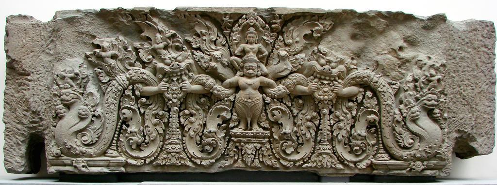 | Keywords: Linteau Musée Guimet 25971.jpg Linteau Cambodge Prasat Kok Po A Angkor province de Siemreap style de Preah Ko fin du 9ème siècle grès Vishnou chevauchant Garuda entre deux têtes monstrueuses; aux extrémités Nagas maîtrisés par Garuda Own 2007-09-25 Vassil Art of Cambodia in the Musée Guimet Sculptures from Cambodia Reliefs of Angkor Vishnu in Khmer sculpture |