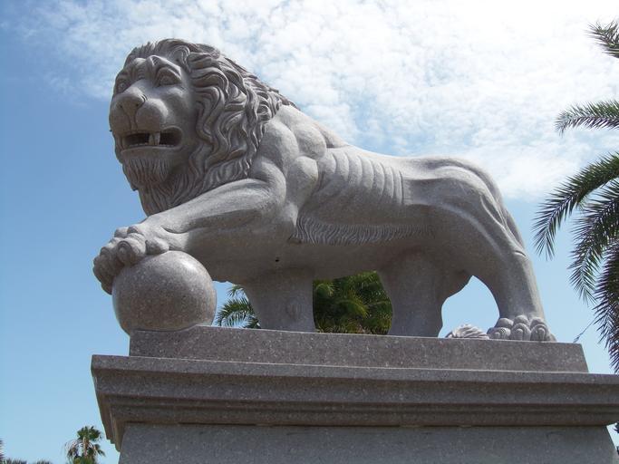 Keywords: lion statue marble sculpture architecture animal stone ancient monument white sky historic landmark attraction tourism st augustine florida oldest city