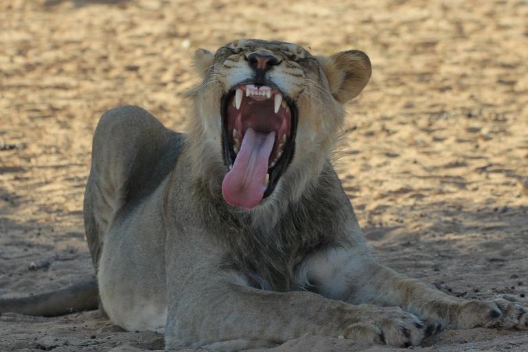 Keywords: lion young male yawning teeth wildlife predator africa safari