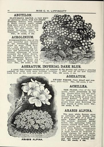 | Keywords: Lippincott seeds (16187282007).jpg MISS C H LIPPINCOTT <br> ABUTILON <br> FLOWERING MAPIiE A very popu- <br> iar perennial shrub with bell-shaped <br> drooping flowers well adapted <br> to house culture easily raised <br> from seed and if sown before <br> April under glass plants will <br> bloom the first season For <br> winter flowering plant in <br> September Finest mixed <br> Pkt 30 seeds 4 cts <br> AOROLINIUM <br> EVEKLASTING One of the <br> most beautiful and valuable <br> of the everlasting flowers <br> called by some Pink Dais- <br> ies ; very effective in bor- <br> ders during the blooming sea- <br> sons and possessing the ad- <br> ditional advantage of being <br> available for winter decora- <br> tion for which purpose it is <br> now extensively grown The <br> densely double flowers are <br> faultless both in shape and <br> color Pkt 100 seeds 3 cts <br> <br> AGERATUM IMPERIAL DARK BLUE <br> A plant that blooms continuously all summer in the garden and makes a pleasing <br> contrast of color with more brilliant varieties I offer seed of the new Imperial <br> Dark Blue as the best and most showy Pkt 300 seeds 4 cts <br> ARABIS ALPINA <br> AGERATUM <br> DWARF WHITE Very dwarf and com <br> pact; pure white Pkt 300 seeds 4 cts <br> ACHILLEA <br> THE PEARL One of the best <br> hardy white perennials in the <br> list Grows about two feet hicrh <br> and from spring till frost is <br> covered with heads of pure white <br> double flowers A grand plait <br> for cemetery decoration j asily <br> grown from seed flowering the <br> first season if sown earlv Pkt <br> 300 seeds 5 cts <br> ARABIS ALPINA <br> The pure white flowers grow <br> so uniformly and thickly that <br> it gives the eflTect of a sheet of <br> snow Plants perfectly hardy <br> The earliest prettiest spring <br> flower The spreading tufts are <br> densely clothed with neat lively <br> green leaves and covered with <br> pure white flowers; conspicuous <br> at a great distance especially <br> in large masses on rockeries oV <br> broad edgings for park roads <br> having the advantage of braving <br> the greatest drought during sum- <br> mer and always looking neat <br> Pkt 400 seeds 4 ets 42162039 132824 65968 Page 16 Text http //www biodiversitylibrary org/page/42162039 1915 Henry G Gilbert Nursery and Seed Trade Catalog Collection ; Miss C H Lippincott Firm NameFound Abutilon NameConfirmed Abutilon hybrid EOLID 71367 NameFound ACHILLEA NameConfirmed Achillea EOLID 36945 NameBankID 2657276 NameFound Ageratum NameConfirmed Ageratum L EOLID 59467 NameFound Arabis alpina NameConfirmed Arabis alpina EOLID 584157 NameBankID 2648388 Biodiversity Heritage Library Lippincott seeds 1915 Garden Stories Catalogs Flowers Fruit Nurseries Horticulture Seeds Vegetables U S Department of Agriculture National Agricultural Library bhl page 42162039 dc identifier http //biodiversitylibrary org/page/42162039 bhlGardenStories BHLinbloom nurseries horticulture u s department of agriculture national agricultural library bhlgardenstories bhlinbloom Information field Flickr posted date ISOdate 2015-01-26 Check categories 2015 August 25 CC-BY-2 0 BioDivLibrary https //flickr com/photos/61021753 N02/16187282007 2015-08-25 05 56 20 cc-by-2 0 PD-old-70-1923 Lippincott seeds Photos uploaded from Flickr by FĂŚ using a script |