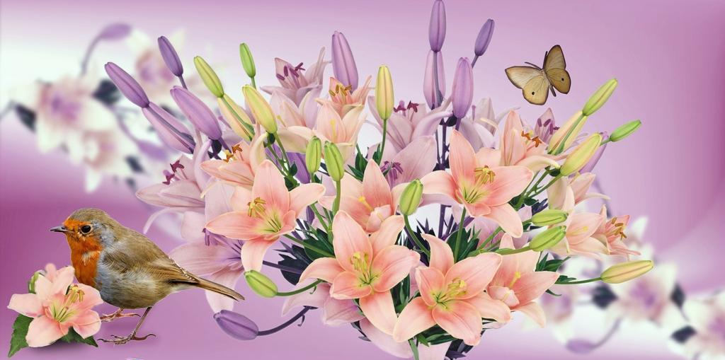 Keywords: lirios flowers branch garden flower garden small flower plant bunch of flowers vegetation pink lily flower arrangement butterfly