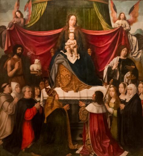 | Keywords: Lisboa-Museu Nacional de Arte Antiga-Nossa Senhora da Misericodia-20140917.jpg Artwork Creator Jan Provoost LangSwitch On the center of the panel sit on throne Our Lady of Mercy with at his feet King Manuel I and his second wife The Queen Maria the Queen Mother and his children En el centro del panel esta sentada en un trono Nuestra Señora de la Merced con a sus pies el rey Manuel I y su segunda esposa María La Reina la Reina Madre sus hijos Au centre du tableau trône Notre Dame de la Misericorde à ses pieds le Roi Manuel I et sa seconde femme La Reine Maria la reine mère ses enfants O centro no painel trono Nossa Senhora da Misericórdia com a seus pés o rei D Manuel I e sua segunda esposa D Maria A rainha a rainha-mãe seus filhos 1515 LangSwitch Oil on oak panels Óleo sobre paneles de roble Huile sur panneaux de chêne Óleo sobre painéis de carvalho cm 72 155 cm 145 155 - cm 72 155 Institution Museu Nacional de Arte Antiga http //www matriznet dgpc pt/MatrizNet/Objectos/ObjectosConsultar aspx IdReg 268139 Matriznet Id 268139 object history LangSwitch Provenance House of Mercy in Funchal Procedencia Misericordia de Funchal Provenance Miséricorde de Funchal Proveniência Misericórdia do Funchal LangSwitch Purchased to Comprado a Acheté à Comprão a Agostinho de Ormellas LangSwitch the el le em 1876 5 23 credit line accession number 1576 Pint place of creation LangSwitch Workshop of Bruges Taller de Bruges Atelier de Bruges Oficina de Bruges own - Daniel Villafruela - 2014 9 17 PD-old-100 Cc-by-sa-3 0 Daniel VILLAFRUELA Nossa Senhora da Misericórdia by Jan Provost Museu Nacional de Arte Antiga Images from the Instituto dos Museus e da Conservação |