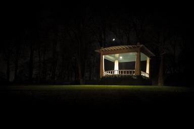 Keywords: lit house music chapel hill night park light solitude lonely exterior illuminated bright sky evening green music chapel music house alone