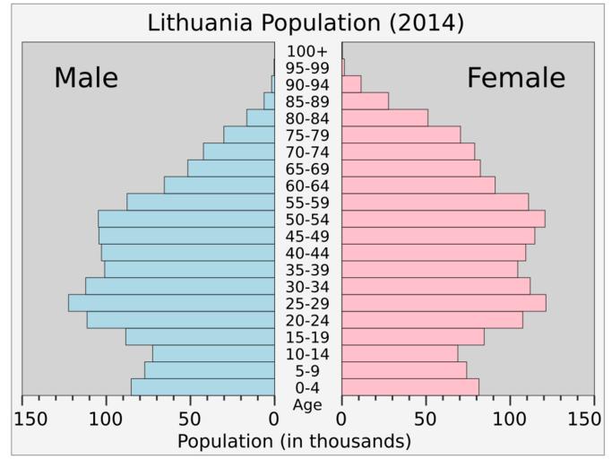 | Keywords: Lithuaniapop.svg  translate yes en Current population pyramid of Lithuania 2014 from UN estimates World Population Prospects http //esa un org/unpd/wpp/Excel-Data/population htm The 2012 Revision 2014-08-26 own Delphi234 cc-zero Population pyramids of Lithuania Uploaded with UploadWizard |