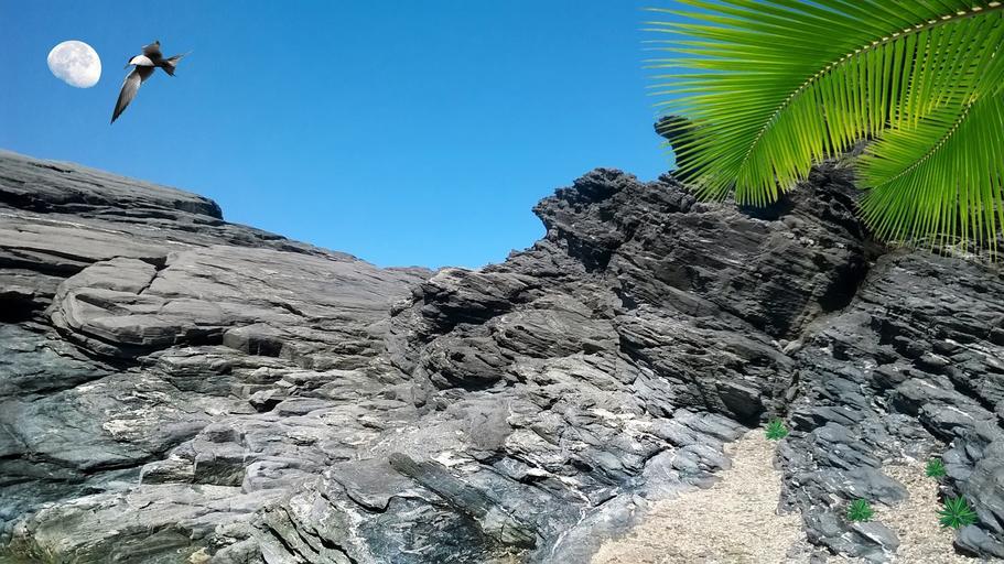 Keywords: litoral moon birds seagull day light blue blue sky environment tree plant landscape forest rocks island shells frame rio de janeiro brazil vegetation brazilian atlantic forest