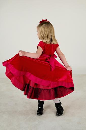 Keywords: little girl red dress cute dress sweet young child childhood adorable standing happy