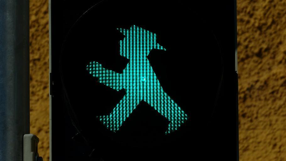 Keywords: little green man traffic lights footbridge traffic signal green males light signal foot gear males road sign road signal lamp go cross pedestrian eastern ampelmännchen ddr