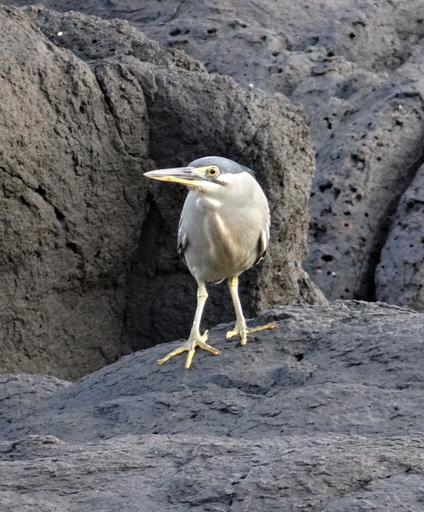 Keywords: little heron bird wader striated heron butorides striata mangrove heron green-backed heron beach rocks gokarna sea arabian india