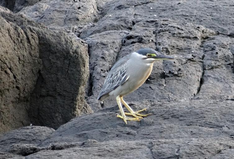 Keywords: little heron bird wader striated heron butorides striata mangrove heron green-backed heron beach rocks gokarna sea arabian india