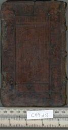 | Keywords: Liturgical Epistles and Gospels in German - Lower cover (c69d13).jpg Style Biblical scene Lettered cover eg intitals titles Panel design; Caption Lower cover; Colour Brown; Edge Unspecified exhibition history Decorative Technique Tooled in blind Panel stamp in blind; Cover Material Calf Wooden boards Traces of 2 pairs of clasps Ms notes on the first pages Macchi states; Bound in the middle of the 16th century Panels; St John with H K ; King David POSTILLA VON DEN FVRNEME FESTEN object history Text 1548; Frankfurt; Unspecified object type Cc-zero place of creation Binding Germany place of discovery Unspecified British Library image http //www bl uk/catalogues/bookbindings/LargeImage aspx RecordId 020-000004482 ImageId ImageId 41846 Copyright BL Liturgical Epistles and Gospels in German Uploaded with GWToolset Liturgical Epistles and Gospels in German - Lower cover c69d13 http //www webarchive org uk/bldatasets/bindings/6405_4 jpg Bookbinding 16th-century bookbinding British Library Bookbindings |