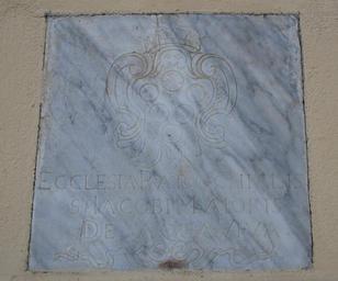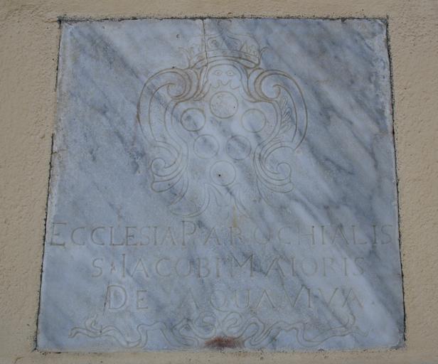 | Keywords: Livorno San Jacopo 5.03.JPG  en ITA Livorno Chiesa di San Jacopo in Acquaviva it The marble plaque placed on the façade of the church written in latin Ecclesia Parrochialis S Iacobi Maioris in Aquaviva Parish Church St James Aquaviva Owm work Piergiuliano Chesi 2012-11-07 San Jacopo in Acquaviva Livorno Plaques in Livorno |