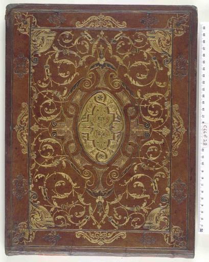 | Keywords: Livre de la Conqueste de la Toison d-Or, - Upper cover (c66f28).jpg Style Centre and cornerpiece; Caption Upper cover; Colour Brown; Edge Unspecified exhibition history Decorative Technique Tooled in gold Tooled in silver; Cover Material Goatskin includes morocco turkey etc Macchi states; third quarter century England F A Bearman N H Krivatsy J F Mowery Fine and historic bookbindings p 58-59 3 3; H M Nixon M M Foot The history of decorated bookbindings fig 30; Österreichische Nationalbibliothek Wien Europäische Einbandkunst p 97 n 171 and for French Renaissance bindings there are unusual lancet shaped tools in the corners and 4 pairs of volutes object history Text 1563; Paris; Unspecified object type Cc-zero place of creation Binding France place of discovery Unspecified British Library image http //www bl uk/catalogues/bookbindings/LargeImage aspx RecordId 020-000006794 ImageId ImageId 43002 Copyright BL Livre de la Conqueste de la Toison d Or Uploaded with GWToolset Livre de la Conqueste de la Toison d Or - Upper cover c66f28 http //www webarchive org uk/bldatasets/bindings/7547_4 jpg Bookbinding 16th-century bookbinding British Library Bookbindings |