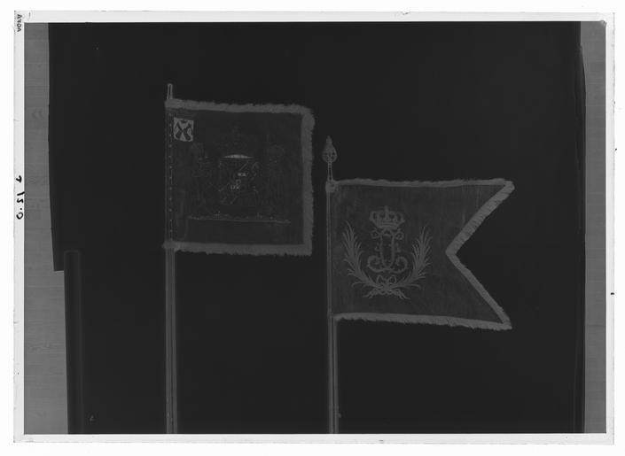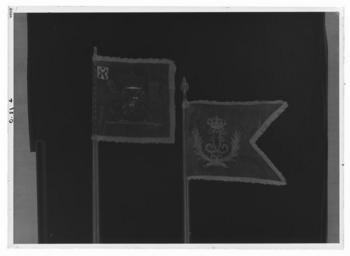 | Keywords: Livstandar vid Karelen och Viborgs läns kavalleri - Livrustkammaren - 26620-negative.tif  Fredrik I av Sverige plain text Från Fredrik I s tid Duk av dubbel vit sidendamast sammansydd av två våder Mönsterrapport på damasten h 470 mm b 245 mm Dekor i applikationsbroderi lika på båda sidor med silke och påsytt siden svenska riksvapnet med Hessen-Kassels vapen i hjärtskölden Såsom sköldhållare två dubbelsvansade med slutna kronor krönta lejon med framåtvända ansikten stående på en 550 mm hög markbit Lejonen applicerade i vit atlas med konturbroderi i vitt och brunt silke Den stora slutna kronan fodrad med sammet ursprungligen röd numera brun Riksvapnet omges av ett vitt band vapnets botten av blå atlas; i övre inre hörnet ett 175 mm högt och 113 mm brett vapen med rött fält varpå två mot varandra vända väpnade armar mellan vilka en öppen krona Karelens vapen genomgående mycket blekta förutom hjärtvapnets mörkblå botten Karelens damast botten karmosinröd Frans enkel drejad av gult silke Duken fäst med tre rader tennlickor på svartkantade gula band Stång av trä kannelerad Löpande bärring Saknar klack Järnbeslagen Holk av förgylld mässing profilerad original caption - 1720 1728 silk Färg gul brun vit material silke - wood - brass - iron size mm 710 size mm 705 size mm 78 frans size mm 94 holk size mm 3480 stång total size mm 475 våd övre size mm 240 våd nedre LRK place of origin original filename LN_B06493_009373 53559 inventory number LRK 17005 26620 CC0 Livstandar vid Karelen och Viborgs läns kavalleri - Livrustkammaren - 26620 tif <gallery caption Different images of same object > File Livstandar vid Karelen och Viborgs läns kavalleri - Livrustkammaren - 35181 tif File Livstandar vid Karelen och Viborgs läns kavalleri - Livrustkammaren - 17550 tif File Livstandar vid Karelen och Viborgs läns kavalleri - Livrustkammaren - 51743 tif </gallery>  |