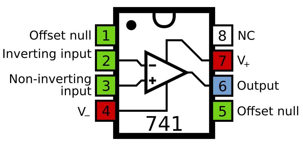 | Keywords: LM741 Pinout Square.svg A pinout diagram of the LM741 operational amplifier when in a square IC package DIP or SOIC as opposed to tin can packages Self-made Inkscape 2008-01-22 Inductiveload Tin can package pinout IC pinout diagrams DIP integrated circuit packages 741 operational amplifier |