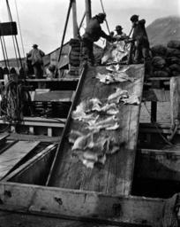 Keywords: Loading salted codfish onto boat, unidentified codfish station, Pavlof Harbor, Alaska, May 1913 (COBB 166).jpeg check categories 29 December 2015 2 Photograph Creator John Nathan Cobb From John Cobb field notebook Loading codfish Pauloff on Sannak Island May 1913 Subjects LCTGM Fishing industry--Alaska--Pavlof Harbor; Fishermen--Alaska--Pavlof Harbor Subjects LCSH Cod fisheries--Alaska--Pavlof Harbor; Salted fish--Alaska--Pavlof Harbor; Codfish--Alaska--Pavlof Harbor; Loading and unloading--Alaska--Pavlof Harbor depicted place United States--Alaska--Sanak Island--Pavlof Harbor 1913 silver gelatin b w Institution University of Washington UWASH-JNCobb-source accession number 166 PD-old-auto-1923 1930 Information field Order Number COB200 Images from the John N Cobb Photograph Collection to check Fishermen Salt-cured fish |