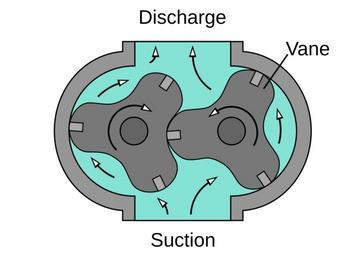 Keywords: LobePump en.svg en The figure shows a common form of lobe pump A cavity is formed and the material is pushed along the interior of the case to the discharge As the lobes mesh in the middle of the pump this prevents bypass or backflow of process material own Jahobr 2015-07-24 LobePump svg Lobe pumps Cc-zero |