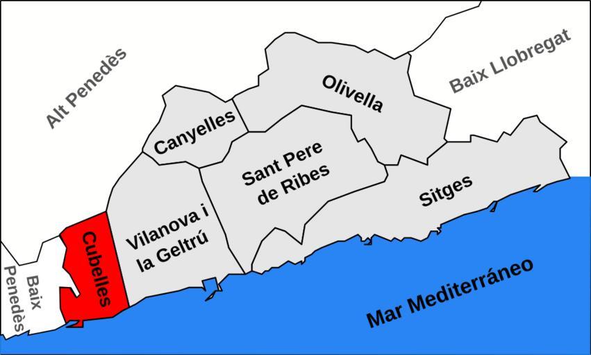 Keywords: Localización de Cubelles en Garraf.svg Localización de Cubelles en Garraf / Lage von Cubelles in der Comarca Garraf Localització_de_Sitges_respecte_del_Garraf svg 2010-01-14 Joan M Borràs ~~Wela49 Maps of Garraf Cubelles