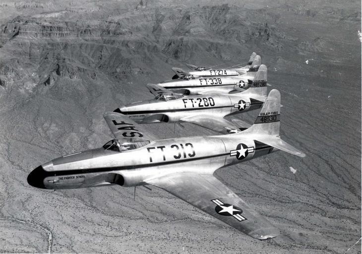 | Keywords: lockheed f-80 f80 shooting star jet usaf fighter outdoor blackandwhite vehicle airplane aircraft black and white Four-aircraft formation of Lockheed F-80As (S/N 44-85313, 44-85280, 44-85338, 44-85274). (U.S. Air Force photo) Four-aircraft formation of Lockheed F-80As (S/N 44-85313, 44-85280, 44-85338, 44-85274). (U.S. Air Force photo) |