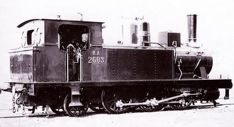 Keywords: Locomotiva RA 2603.jpg it Locomotiva n 2603 gruppo 260 della Rete Adriatica 1899 1905 Foto FS author other versions Custom license marker 2014 11 22 PD-old Uploaded with UploadWizard RA 260 Rail transport in Italy in the 1900s Scanned with Canon MP260 |