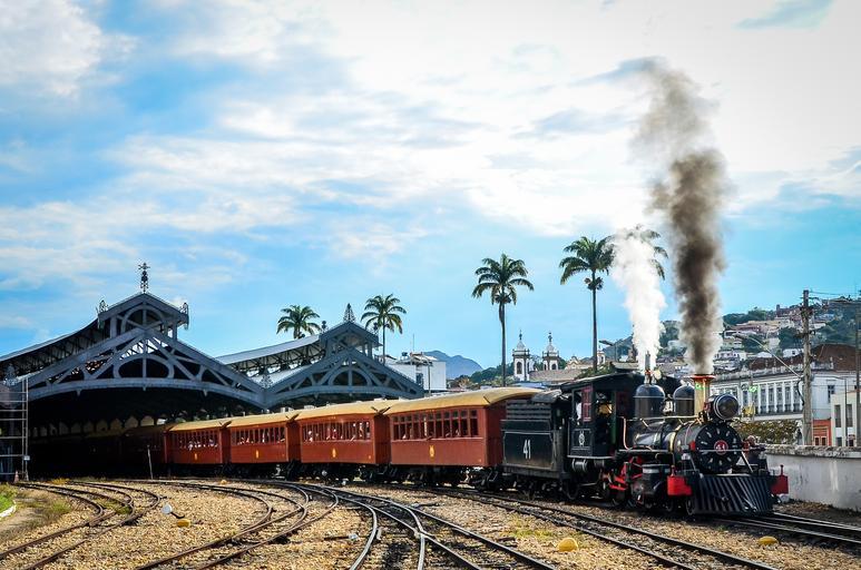 Keywords: locomotive train steam engine carriage railroad smoke coal station passenger travel outdoors exploration life scene landscape palm trees city journey trip wander summer
