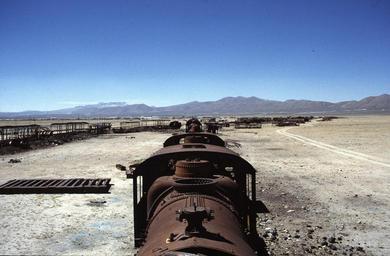 | Keywords: LocomotiveCemetaryUyuni.jpg  Locomotive Cemetary near Uyuni Bolivia Lokomotivfriedhof nahe Uyuni Bolivien Photo taken by Steffen Sledz 1996-03-14 Steffen Sledz Zone42 Salar de Uyuni Steam locomotives of Bolivia Mountains of Bolivia 1996 in Bolivia Damaged rolling stock |