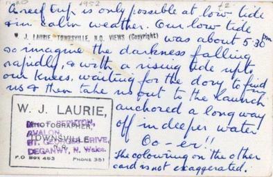 | Keywords: w j laurie wjlaurie lodestone reef lodestonereef great barrier reef greatbarrierreef townsville queensland australia 1950s cru årgang jahrgang vendimia text document writing Lodestone Reef via Townsville, Qld - 1950s - reverse Explore Aussie~mobs' 9093 photos on Flickr! |