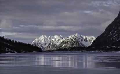 Keywords: lofoten mountain ice mirroring
