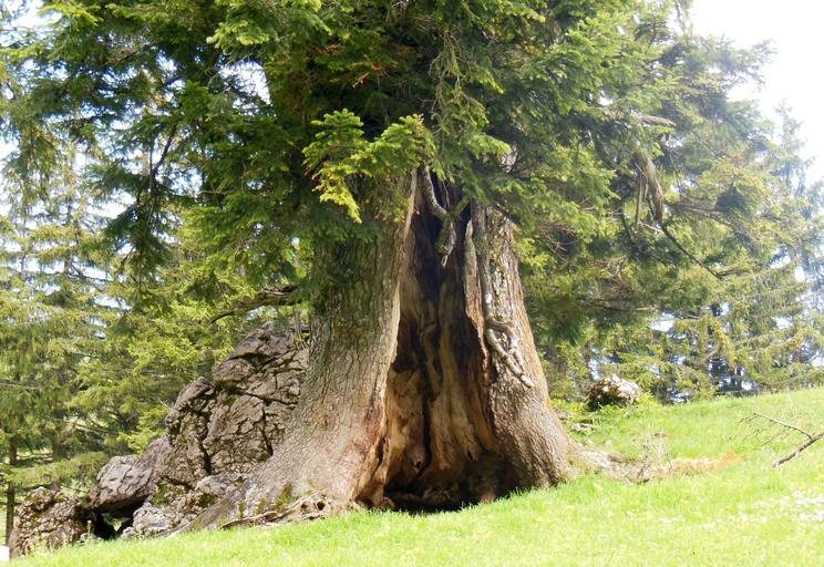 Keywords: log cave tree cave old tree hochfelln bavaria upper bavaria ruhpolding meadow