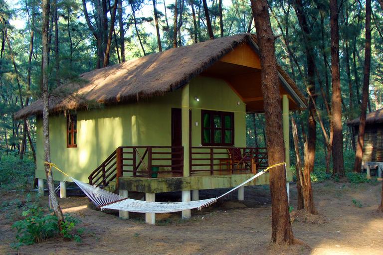 Keywords: log hut wood cabin slanted roof forest casuarina india hammock