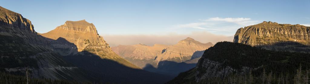 Keywords: logan pass panorama landscape scenic hazy continental divide glacier national park montana usa highest point going-to-the-sun road mountains wilderness clouds sky landmark peaks shadows outdoors terrain tranquil geologic