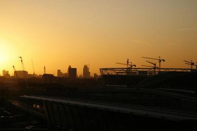 Keywords: london construction city sunset orange yellow darkness shadows cranes tourism architecture building skyline scene landscape