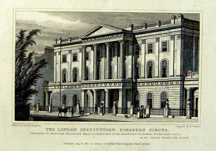 | Keywords: London Institution at the Finsbury Circus.jpg en London Institution http //www old-print com/mas_assets/full/F174852/F1748521286 jpg William Deeble fl 1814 - 1853 published in 1827 PD-Art Finsbury Circus Demolished buildings in the City of London Education in the City of London |
