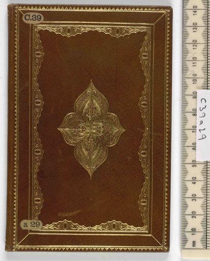 Keywords: Londons Vacation, and the Countries Tearme - Upper cover (c39a29).jpg Style Centrepiece made of small tools; Caption Upper cover; Colour Brown; Edge Unspecified exhibition history Decorative Technique Tooled in gold; Cover Material Goatskin includes morocco turkey etc Signed Tuckett Binder to the Queen object history Text 1637; London; Unspecified object type Cc-zero place of creation Binding England place of discovery Unspecified British Library image http //www bl uk/catalogues/bookbindings/LargeImage aspx RecordId 020-000005290 ImageId ImageId 42250 Copyright BL Londons Vacation and the Countries Tearme Uploaded with GWToolset Londons Vacation and the Countries Tearme - Upper cover c39a29 http //www webarchive org uk/bldatasets/bindings/6833_4 jpg 19th-century bookbinding Bookbinding British Library Bookbindings |