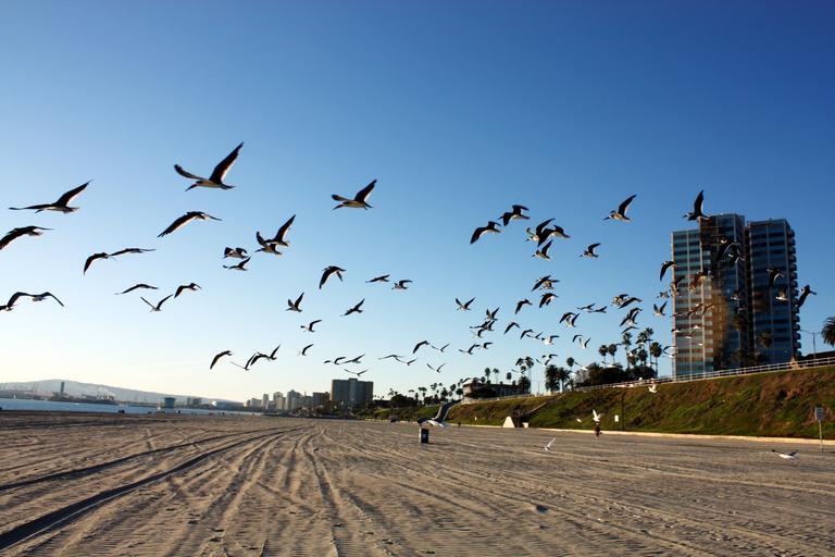 MAKE A MEME View Large Image Long Beach California Birds.JPG Birds in flight at the beach in Long Beach California own 2008 Jessicacu Long Beach California Beaches of Los Angeles County California