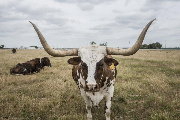 Keywords: longhorn steer cattle bovine range beef looking portrait agriculture animal horns livestock ranch