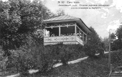 | Keywords: Lopatinskiy garden 2.jpg en Lopatinsky garden in Smolensk Track to climb barbett now the arbor and stairs do not exist ru Лопатинский сад в Смоленске До ожка для восхождения на ба бетт ныне беседка и лестница не существуют О игинальная отк ытка е установлены before 1917 года PD-RusEmpire 20th-century postcards Postcards of Smolensk Lopatinsky garden Pavilions garden structures |