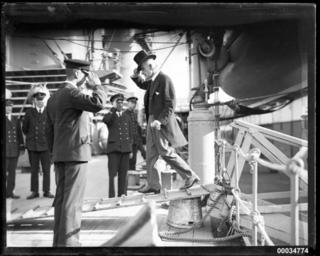 Keywords: samuel j hood collection samueljhoodcollection hnlms java hnlmsjava hnlms eversten hnlmseversten hnlms de ruyter hnlmsderuyter dutch dutch navy visit to sydney dutchnavyvisittosydney dutch navy dutchnavy royal netherlands navy royalnetherlandsnavy the koninklijke marine thekoninklijkemarine west circular quay westcircularquay sydney harbour sydneyharbour harbour scenes harbourscenes sydney harbour bridge sydneyharbourbridge rear-admiral c c kayser rearadmiralcckayser naval vessel navalvessel hilda violet marks hildavioletmarks marks family marksfamily ernest samuel marks ernestsamuelmarks percy j marks percyjmarks ship warship koninklijke marine koninklijkemarine km hnlms java (1921) hnlmsjava1921 java-class javaclass cruiser light cruiser lightcruiser sunk battle of the java sea battleofthejavasea battle of java sea battleofjavasea blackandwhite monochrome photo border black and white The Koninklijke Marine (Royal Netherlands Navy) including HNLMS JAVA, HNLMS EVERSTEN and HNLMS DE RUYTER arrived in Sydney on 3 October 1930. The ships berthed in West Circular Quay and The Sydney Morning Herald reported on the 'unfamiliar spectacle' of the Dutch squadron arrival. On 10 October, the squadron hosted a reception on board JAVA 'as a return for the hospitality they had received while in Sydney'. The SMH reported that distinguished guests were greeted by the Dutch Consul-General P E Teppema, Madame Teppema and Rear-Admiral Kayser. This photo is part of the Australian National Maritime Museum’s Samuel J. Hood Studio collection. Sam Hood (1872-1953) was a Sydney photographer with a passion for ships. His 60-year career spanned the romantic age of sail and two world wars. The photos in the collection were taken mainly in Sydney and Newcastle during the first half of the 20th century. The ANMM undertakes research and accepts public comments that enhance the information we hold about images in our collection. This record has been updated accordingly. Photographer: Samuel J. Hood Studio Collection Object no. 00034774 Check out our blog on naval visits to Sydney bit.ly/MTtR5H The Koninklijke Marine (Royal Netherlands Navy) including HNLMS JAVA, HNLMS EVERSTEN and HNLMS DE RUYTER arrived in Sydney on 3 October 1930. The ships berthed in West Circular Quay and The Sydney Morning Herald reported on the 'unfamiliar spectacle' of the Dutch squadron arrival. On 10 October, the squadron hosted a reception on board JAVA 'as a return for the hospitality they had received while in Sydney'. The SMH reported that distinguished guests were greeted by the Dutch Consul-General P E Teppema, Madame Teppema and Rear-Admiral Kayser. This photo is part of the Australian National Maritime Museum’s Samuel J. Hood Studio collection. Sam Hood (1872-1953) was a Sydney photographer with a passion for ships. His 60-year career spanned the romantic age of sail and two world wars. The photos in the collection were taken mainly in Sydney and Newcastle during the first half of the 20th century. The ANMM undertakes research and accepts public comments that enhance the information we hold about images in our collection. This record has been updated accordingly. Photographer: Samuel J. Hood Studio Collection Object no. 00034774 Check out our blog on naval visits to Sydney bit.ly/MTtR5H |