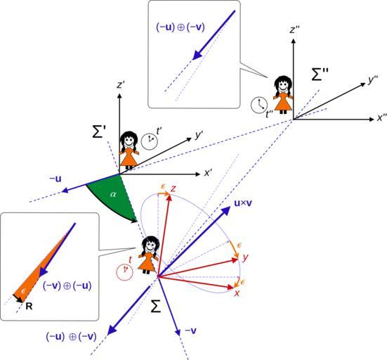 | Keywords: Lorentz boosts and Thomas rotation 4.svg en A frame F is boosted with velocity -v2 relative to another frame F' which is boosted with velocity -v1 relative to another frame F 2015-12-14 own Maschen other versions cc-zero See also File Lorentz boosts and Thomas rotation 1 svg File Lorentz boosts and Thomas rotation 2 svg File Lorentz boosts and Thomas rotation 3 svg Special relativity Theoretical physics Mathematical physics Physics Mathematics Coordinate systems Motion Velocity Time Clocks Lorentz boosts Rotation Uploaded with UploadWizard |