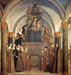 | Keywords: Lorenzo Costa - Giovanni II Bentivoglio and His Family - WGA05427.jpg Artwork 1488 Oil on canvas Institution Bentivoglio Chapel San Giacomo Maggiore Bologna object history credit line accession number WGA link 5427 http //www wga hu/art/c/costa/lorenzo/maggiore/triumph jpg http //www wga hu/html/c/costa/lorenzo/maggiore/triumph html PD-old-100 painting portrait Italian 1451-1500 Lorenzo Costa Cappella Bentivoglio 1488 paintings WGA form painting WGA type portrait WGA School Italian WGA time period 1451-1500 |